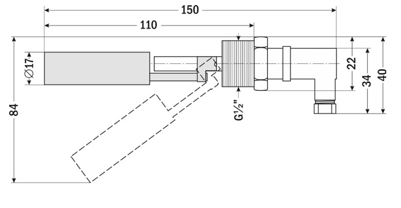 • В зависимости от способа установки датчика выходной контакт замыкается или размыкается при понижении уровня жидкости