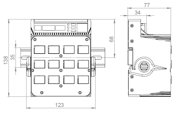 Базовый блок представляет собой корпус, в котором размещена материнская плата с разъемами для подключения цепей питания и последовательных интерфейсов RS-485 и Ethernet.