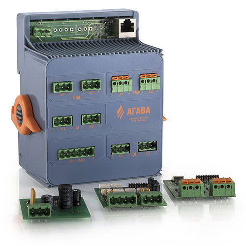 - АГАВА МВВ-40.3 (AIO-DI-R) — 1 интерфейса Ethernet, 2 аналоговых входа, 2 аналоговых выхода, 4 дискретных входа, 2 дискретных выхода типа реле