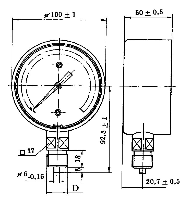 Габаритные и присоединительные размеры манометра МТК-ОП