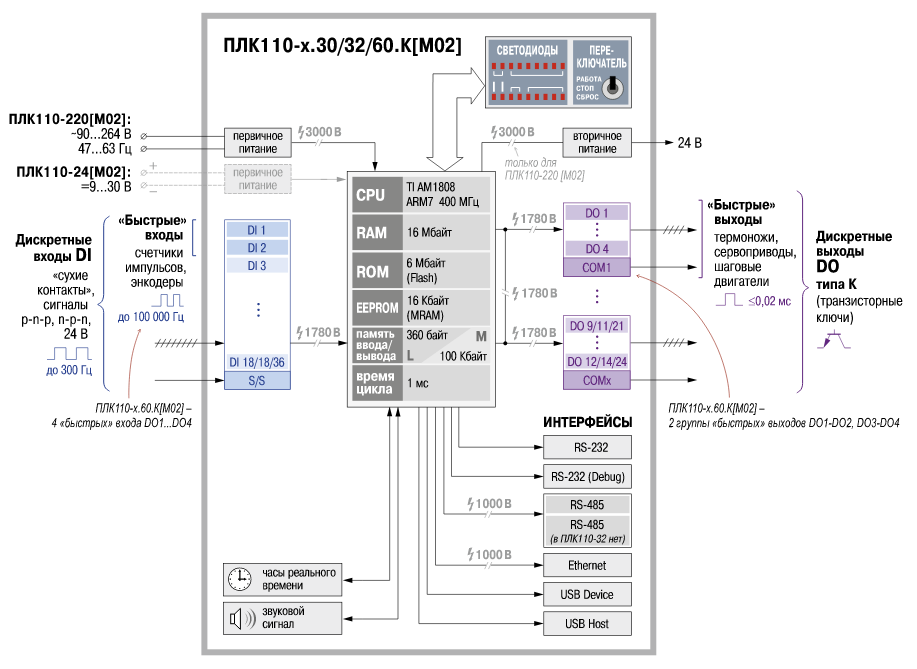 ПЛК110-220.Х.Х-Х | от 90 до 264 В переменного тока либо постоянного тока (номинальное 120/230 В) | ||