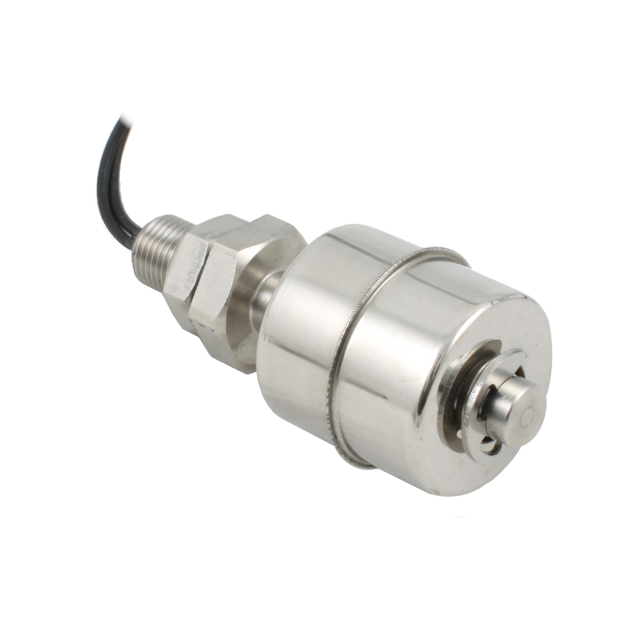 Поплавковый датчик уровня жидкости, вертикальное исполнение, -20 +120 С, соединение- резьба 1/8″PF нерж. сталь, кабель 500 мм, поплавок D=28 мм нерж. сталь