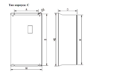 В качестве примера представлен внешний вид трехфазного преобразователя частоты, 380 В, мощностью 7,5 кВт