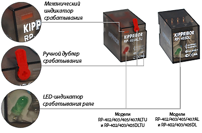 RP-403.ALTU | 24VAC, 5A при 250V, механический индикатор, LED-индикатор, дублер |