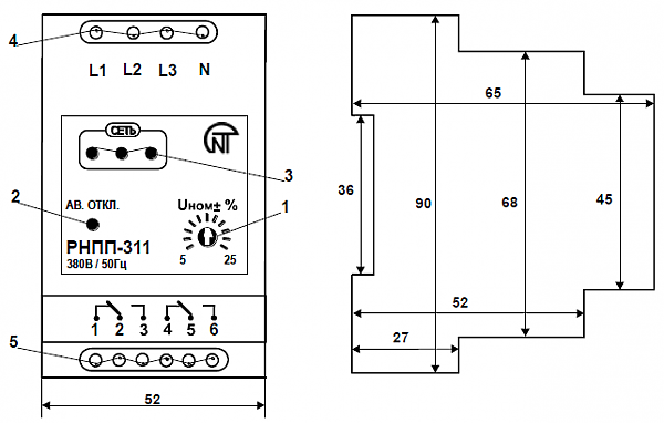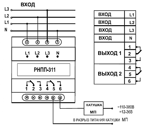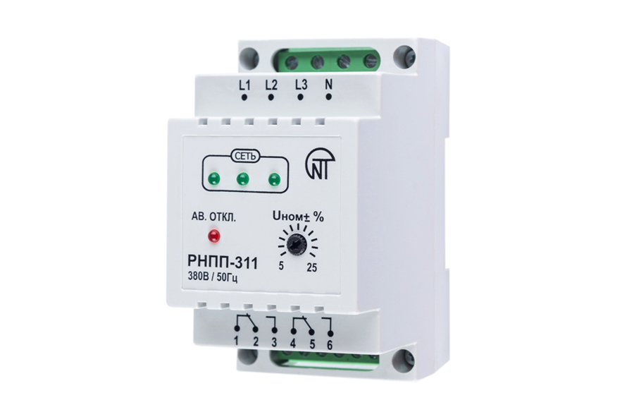 Реле напряжения РНПП-311 предназначено для защиты трехфазных потребителей от основных видов аварий в электрической сети, таких как: