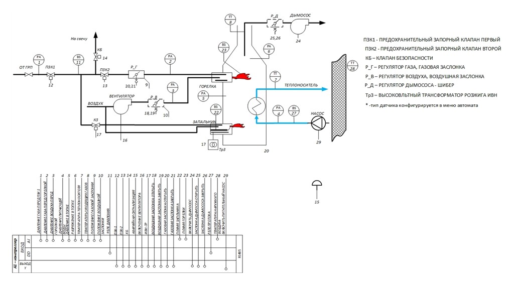 Обеспечивает останов котла и блокировку его пуска до устранения причины при возникновении следующих аварийных ситуаций: