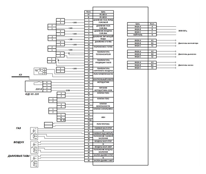 • Наличие интерфейса RS-485 Modbus RTU. Позволяет работать в автоматическом режиме и в системах диспетчеризации котельной;