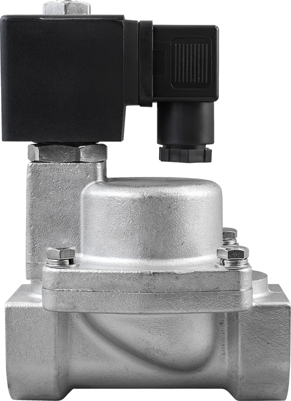 Нормально закрытый соленоидный клапан – это магнитный клапан, в котором закрытое положение сохраняется, если управляющее напряжение на его индукционную катушку не подается. При подаче напряжения на катушку нормально закрытый клапан открывается и пропускает через себя поток рабочей среды. При отключении управляющего напряжения этот клапан автоматически закрывается и перекрывает поток рабочей среды в трубопроводе. При обрыве провода управляющего напряжения клапан будет закрыт.