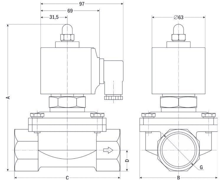 Клапан соленоидный нормально закрытый прямого действия с диафрагмой AR-2K21 предназначен для управления потоком рабочей среды в трубопроводе.