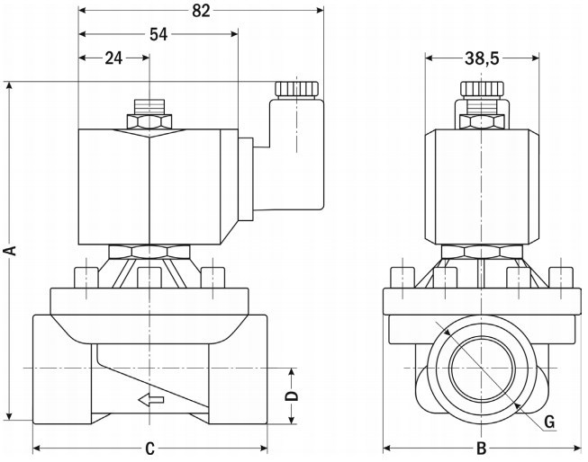 Клапан соленоидный нормально закрытый прямого действия с диафрагмой для управления потоком рабочей среды в трубопроводе