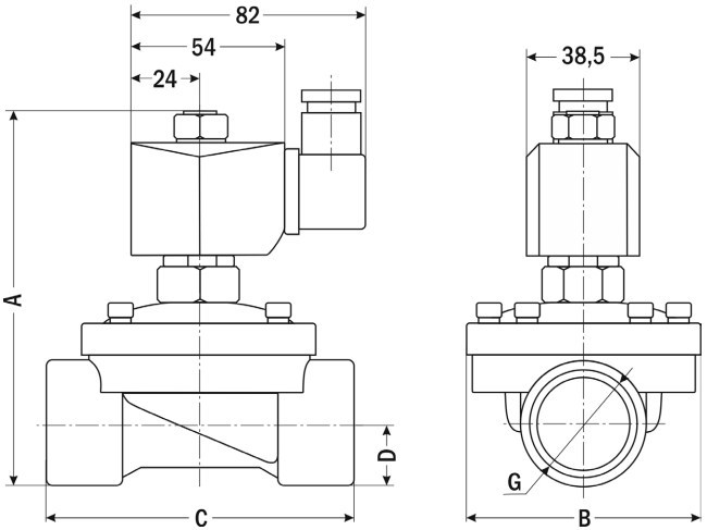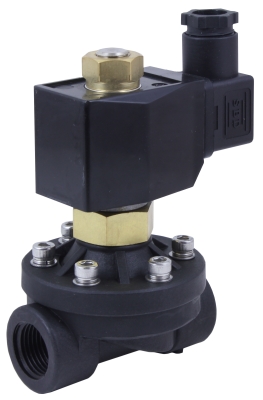 Клапан соленоидный нормально открытый прямого действия с диафрагмой для управления потоком рабочей среды в трубопроводе