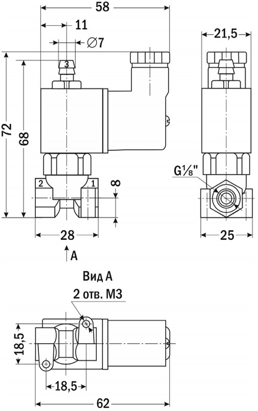 - Присоединение: вход – G⅛», выход – G⅛» и штуцер ∅ 7,0 мм