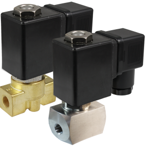 Клапан соленоидный миниатюрный нормально закрытый прямого действия с поршнем для управления потоком рабочей среды в трубопроводе