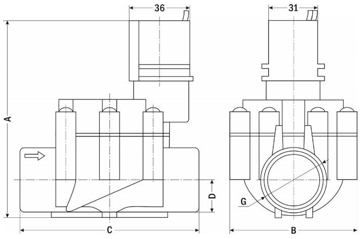 - Возможность ручного открытия/закрытия клапана при отсутствии питания