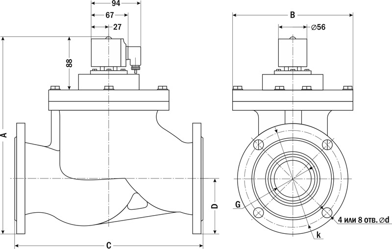 Клапан соленоидный нормально закрытый непрямого действия с поршнем для использования под водой. Предназначен для управления потоком рабочей среды в трубопроводе.