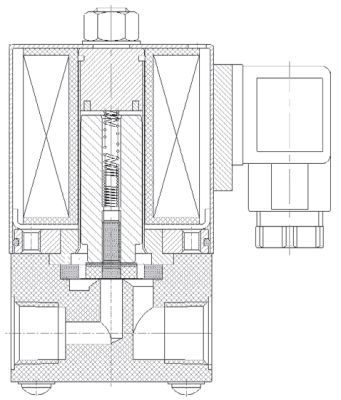 Нормально закрытый соленоидный клапан – это магнитный клапан, в котором закрытое положение сохраняется, если управляющее напряжение на его индукционную катушку не подается. При подаче напряжения на катушку нормально закрытый клапан открывается и пропускает через себя поток рабочей среды. При отключении управляющего напряжения этот клапан автоматически закрывается и перекрывает поток рабочей среды в трубопроводе. При обрыве провода управляющего напряжения клапан будет закрыт.