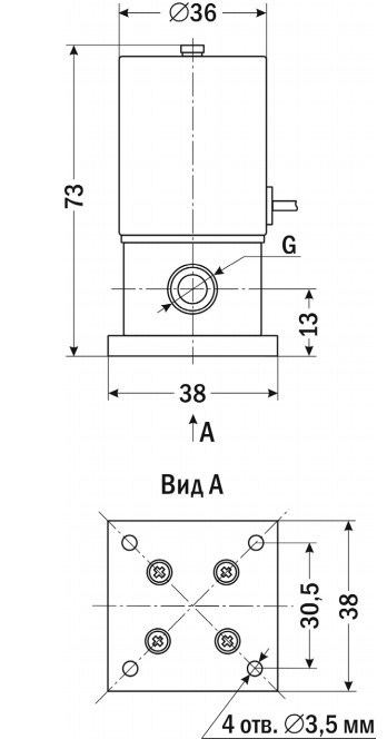 Клапан соленоидный нормально закрытый прямого действия с диафрагмой для управления потоком рабочей среды в трубопроводе