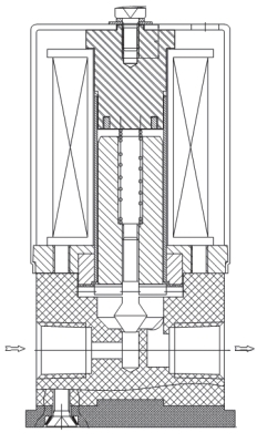 Нормально закрытый соленоидный клапан – это магнитный клапан, в котором закрытое положение сохраняется, если управляющее напряжение на его индукционную катушку не подается. При подаче напряжения на катушку нормально закрытый клапан открывается и пропускает через себя поток рабочей среды. При отключении управляющего напряжения этот клапан автоматически закрывается и перекрывает поток рабочей среды в трубопроводе. При обрыве провода управляющего напряжения клапан будет закрыт.