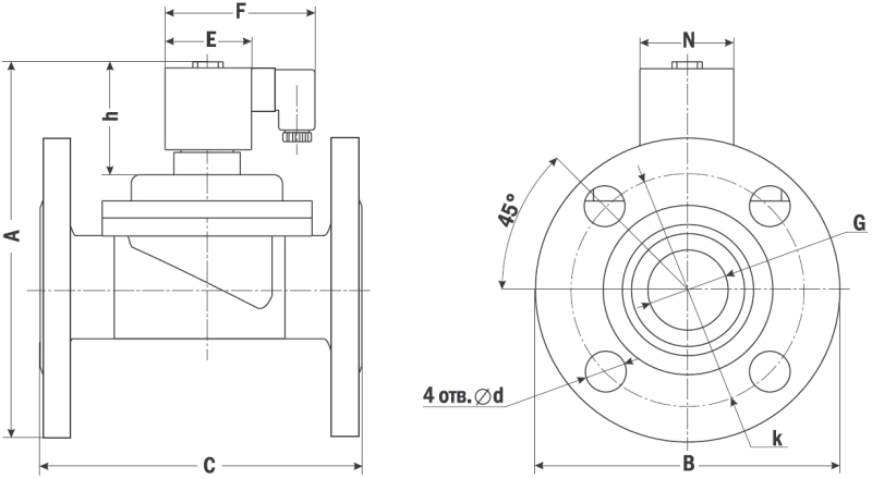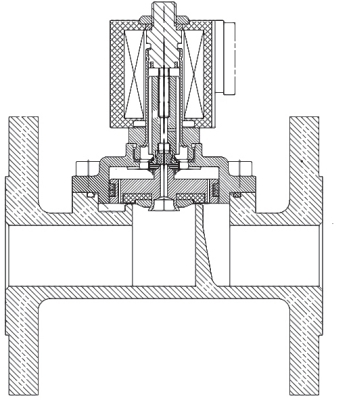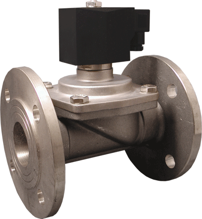 Клапан соленоидный фланцевый нормально закрытый фланцевый прямого действия с поршнем для управления потоком рабочей среды в трубопроводе