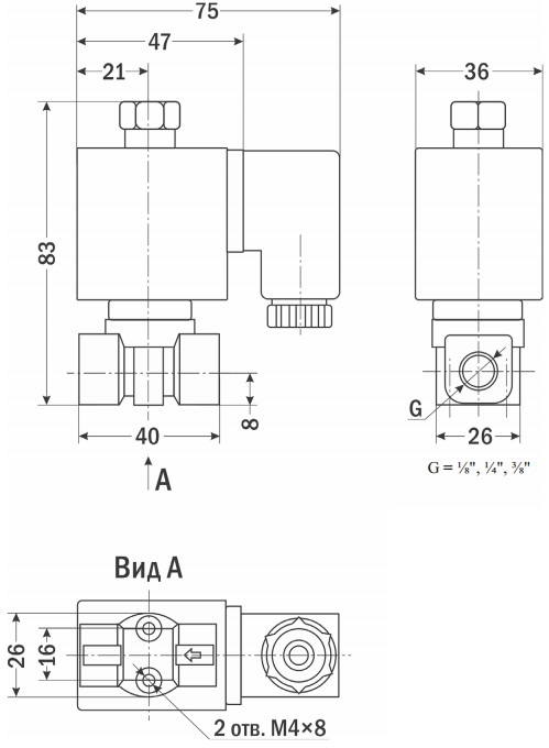 Клапан соленоидный нормально открытый прямого действия с поршнем для управления потоком рабочей среды в трубопроводе