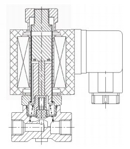Нормально открытый соленоидный клапан – это клапан, который при отсутствии напряжения на его индукционной катушке открыт для потока рабочей среды через него. При подаче напряжения на катушку магнитный клапан этого типа закрывается и остается закрытым все время, пока напряжение подается на катушку. При обрыве провода управляющего напряжения клапан будет открыт.