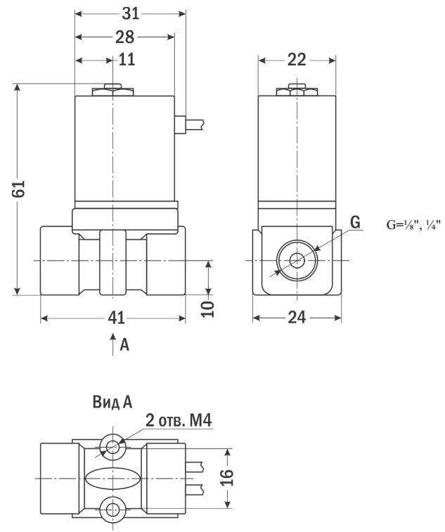 Клапан соленоидный миниатюрный нормально закрытый прямого действия с поршнем для управления потоком рабочей среды в трубопроводе