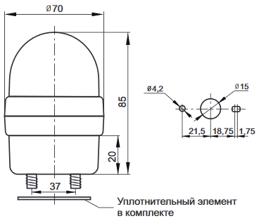 SL70B-220-R | Светодиодный маячок, диаметр 70мм, высота 85мм, режим работы: вращение 120об/мин, зуммер 80дБ, кабель 0,5м, IP54, -20…+50С | красный | 220VAC |