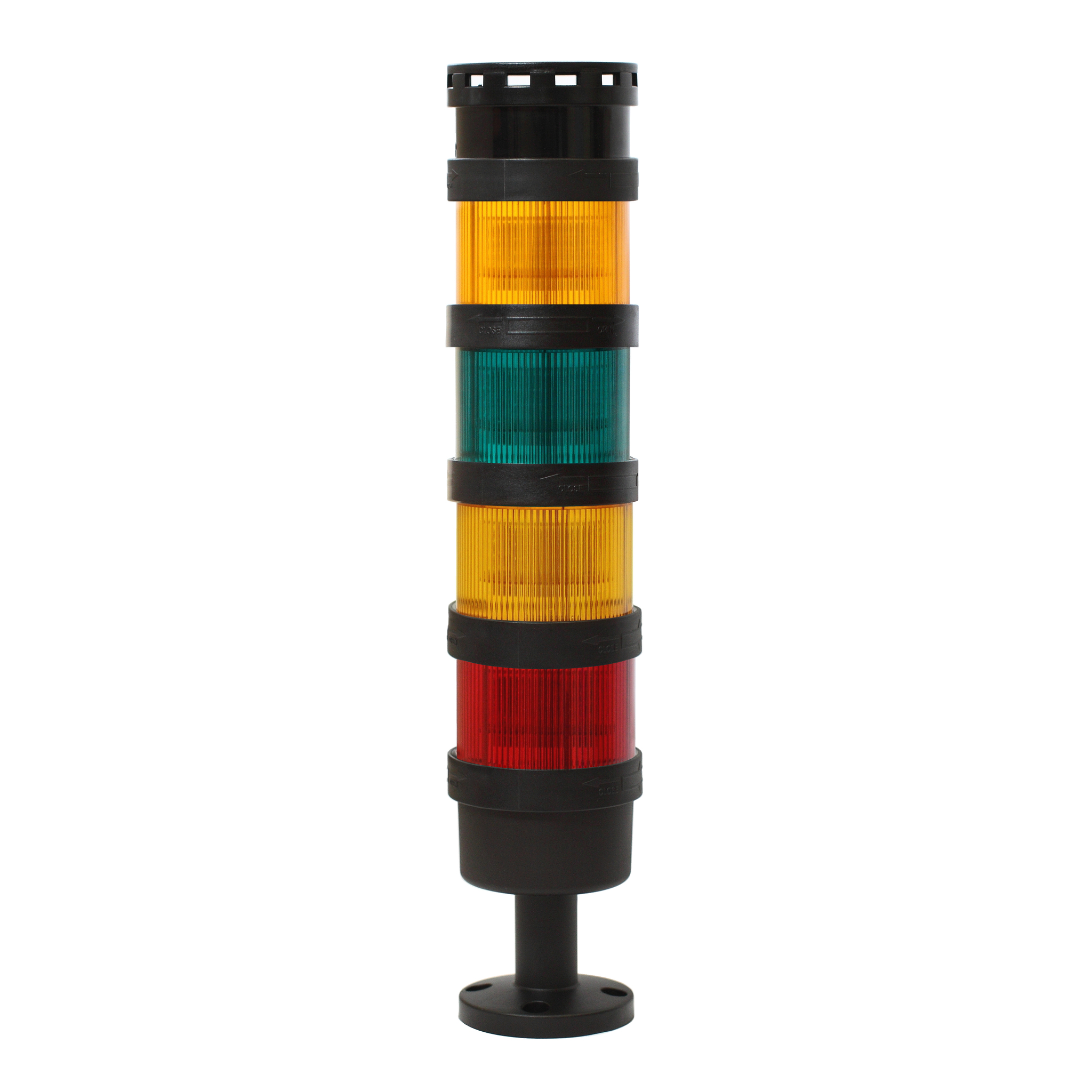 Светосигнальная колонна d=70мм, светодиод, стойка 55мм, основание d=70мм,постоянное свечение, зуммер, цвет:желтый, зеленый, желтый, красный, 24VDC, IP65, кабель 0,5м