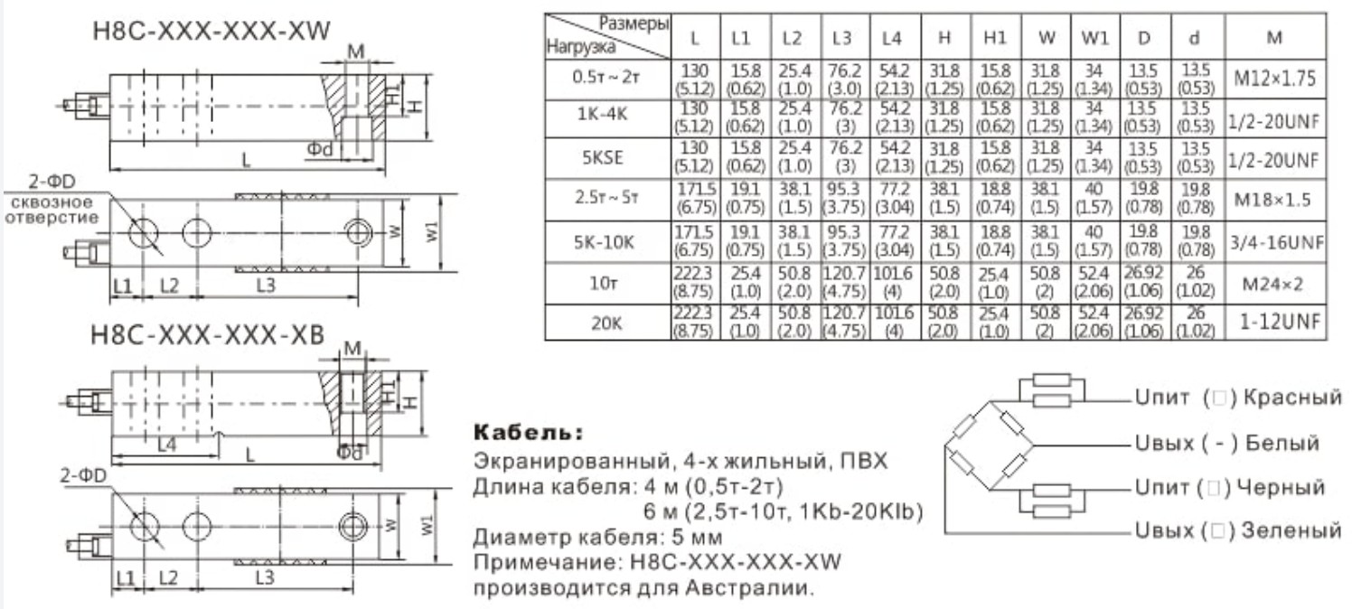 Балочный тип датчиков применяется для изготовления платформенных весов и весоизмерительных систем. Зарекомендовал себя как одно из массовых конструктивных исполнений, применяемых в промышленном весоизмерении. Благодаря низкому профилю и высоким метрологическим характеристикам этот тип датчиков находит широкое применение во многих промышленных системах весоизмерения. Корпус H8C выполнен из стали с никелевым покрытием, класс защиты тензодатчика IP67.