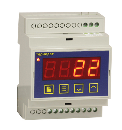 Термодат-10М7-Р4 — Одноканальный ПИД-регулятор температуры, аварийный сигнализатор и позиционный регулятор со светодиодными индикаторами, исполнение пластиковом корпусе.