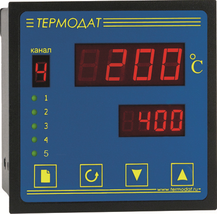 Термодат-13КТ5 — ПИД-регулятор температуры, с возможностью регулирования по пяти независимым каналам одновременно. Методы управления нагревателем: ШИМ, РСП, ФИУ.