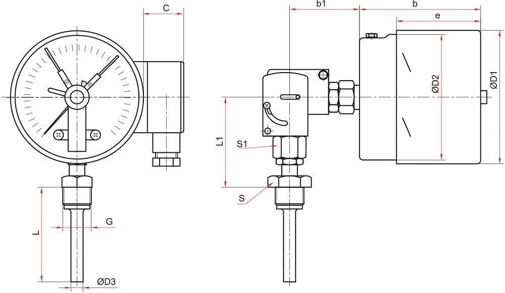 Термометры коррозионностойкие с электроконтактной приставкой (универсальное присоединение)