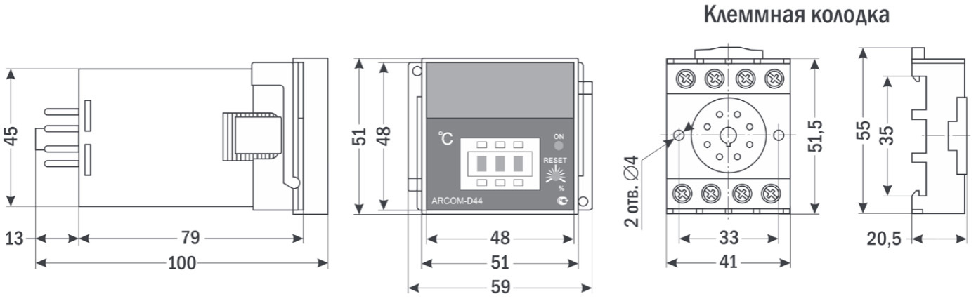 Габаритные размеры | 48×48×100 мм (51×51×116 мм с колодкой и крышкой) | |