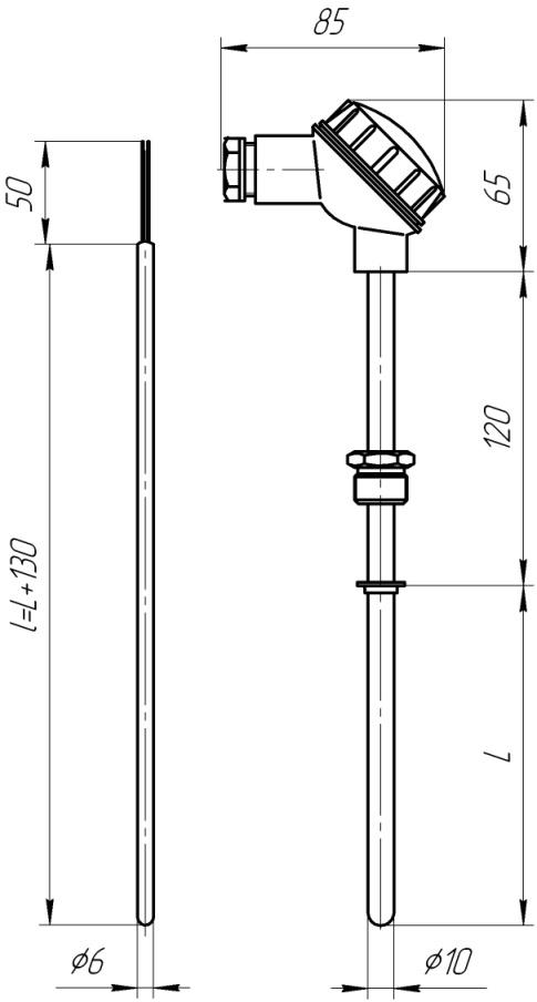 Конструкция разборная, чувствительный элемент помещен в термометрическую вставку. Защитная арматура с подвижным штуцером М20×1,5; материал клеммной головки – фенопласт.