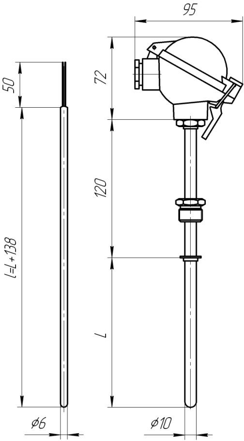 Конструкция разборная, чувствительный элемент помещен в термометрическую вставку. Защитная арматура с подвижным штуцером М20×1,5; материал клеммной головки – алюминиевый сплав.