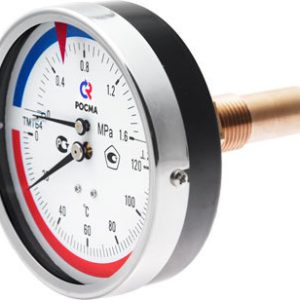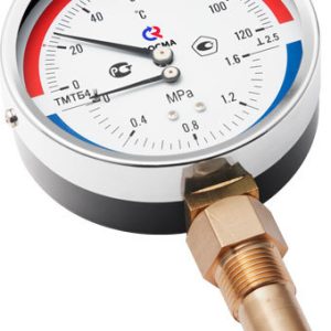 Термоманометр объединяет в одном корпусе манометр и термометр, имеет две шкалы — давления и температуры. Прибор комплектуется клапаном, позволяющим демонтировать термоманометр без разгерметизации системы.