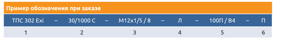 - Тип и модификация термопреобразователя, вид взрывозащиты (для общепромышленного исполнения не указывается)