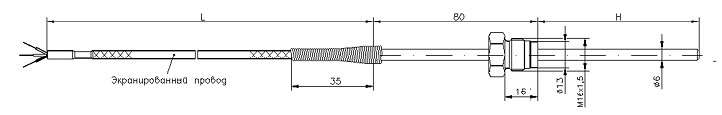 ТС716B-d6-H150-L0,5-М16-МГТФЭ-Pt100 (-70…+500С)