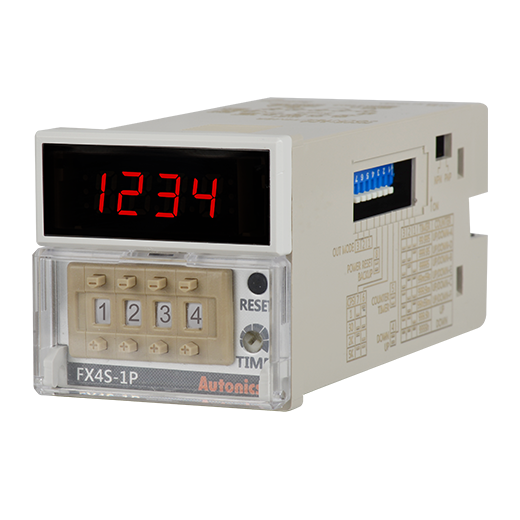 Компактные цифровые счетчики/таймеры серии FXS – интегрированные устройства, совмещающие функции счетчиков и таймеров. Доступны модели с разными скоростями отсчета: 1 отсчет/мин., 30 отсчетов/мин., 2 тыс. отсчетов/мин. и 5 тыс. отсчетов/мин., а также модели с разными диапазонами времени. Поддерживается работа в режимах прямого или обратного отсчета, а также прямого и обратного отсчета, устройства обеспечивают точность измерения и отображение разных системных параметров. Устройства серии FXS доступны в виде моделей с 4-разрядными и 5-разрядными дисплеями с размерами согласно стандарту DIN (Ш х В, 48 × 48 мм).