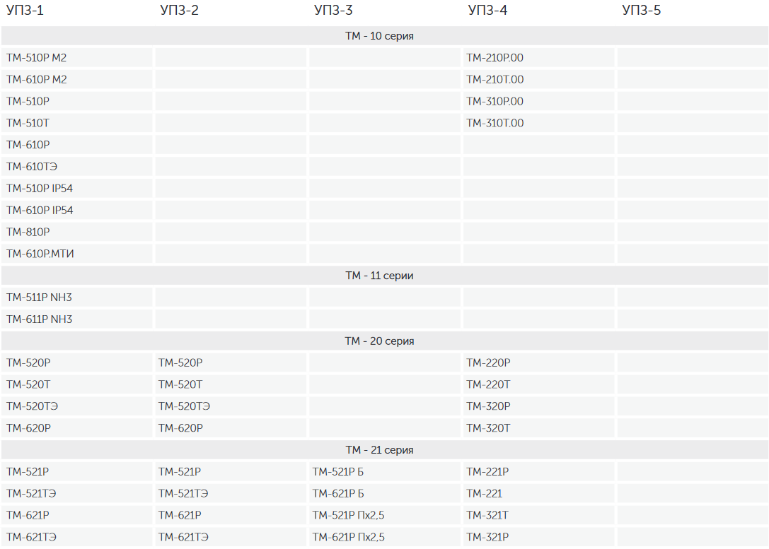 Таблица совместимости манометров и термометров со всеми вариациями указателей