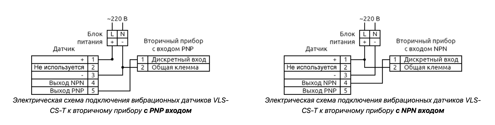 Схемы подключения вибрационных сигнализаторов уровня ELHART VLS-СS-T