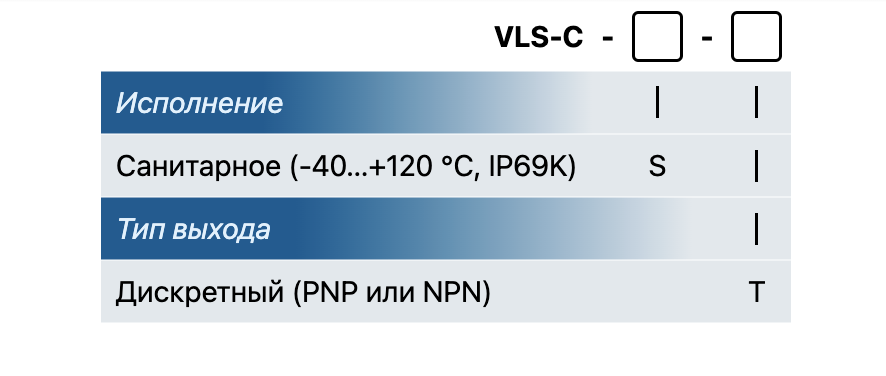 Информация для заказа вибрационных сигнализаторов уровня ELHART VLS-СS-T