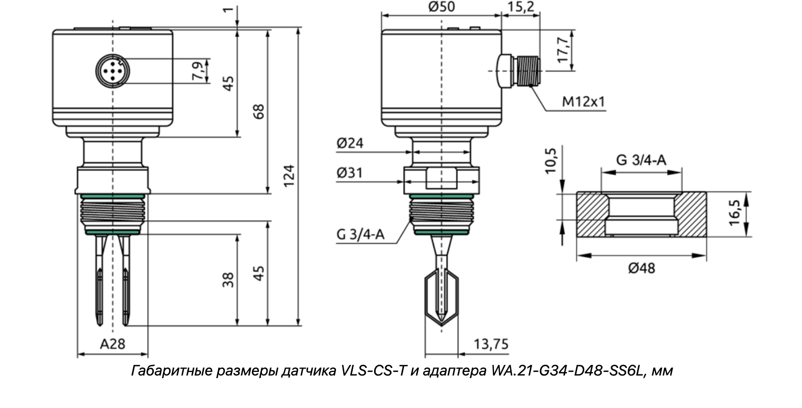 Габаритные размеры вибрационных сигнализаторов уровня ELHART VLS-СS-T