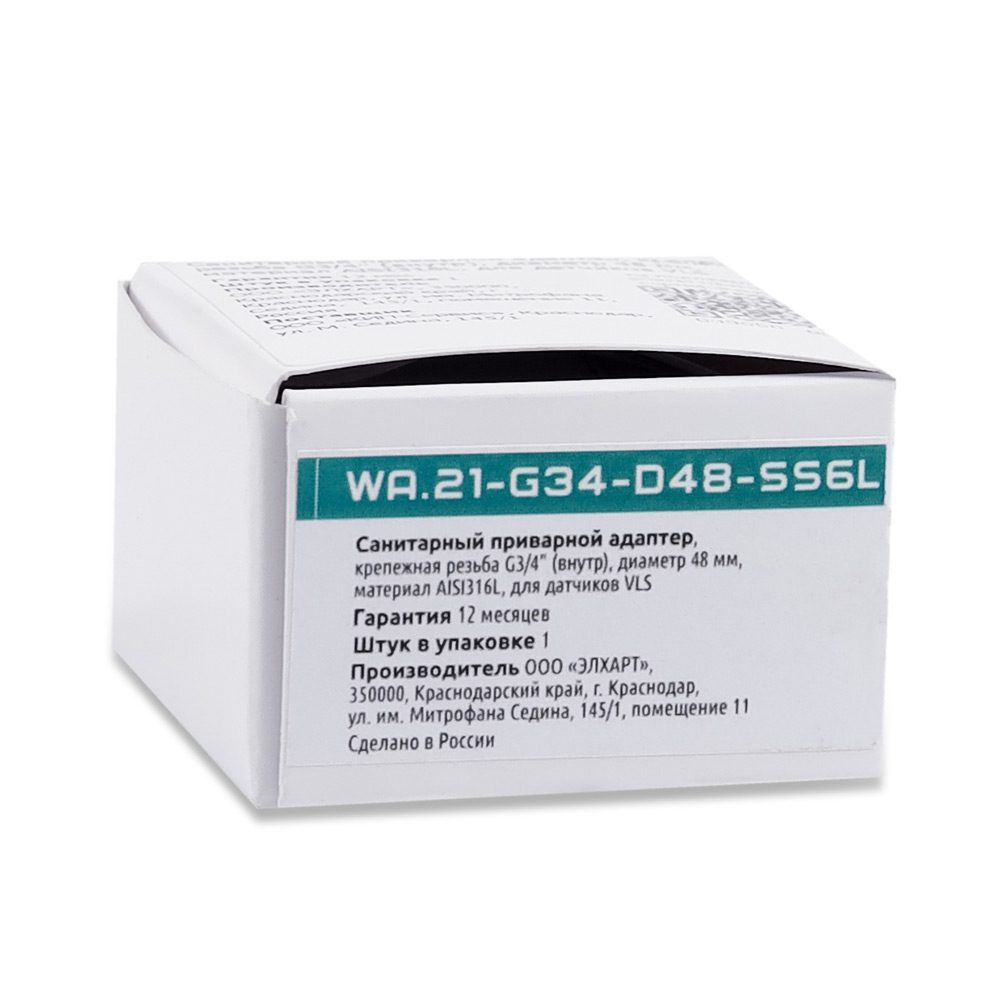 Конструктивно датчик выполнен в металлическом корпусе из нержавеющей стали AISI316L, в котором расположен чувствительный элемент и электронный блок преобразования. При совместном использовании с приватным адаптером WA.21-G34-D48-SS6L (поставляется отдельно), обеспечивается санитарное присоединение к процессу.