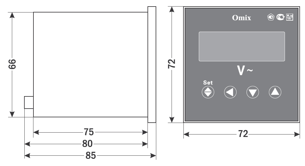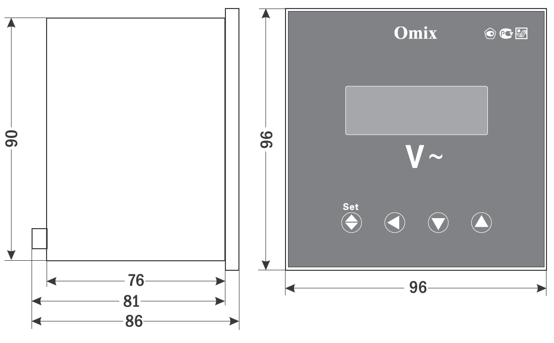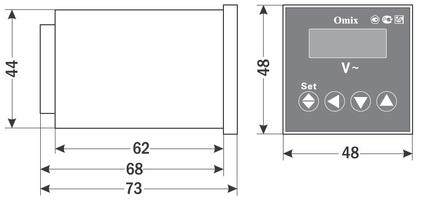 Габаритные размеры | P44: 48×48×73 мм Р94: 48×96×105 мм Р77: 72×72×85 мм Р99: 96×96×86 мм |