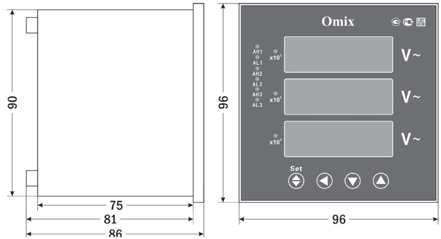 Вольтметр 3ф с 1 РЕЛЕ Omix P99-VX-3-0.5-K(~0…500 В)(~0…5МВ)