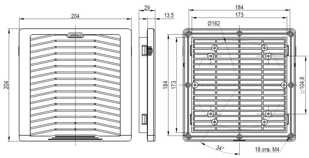 Габаритные размеры вентилятора KIPVENT-200.01.230 Габаритные размеры впускной решетки KIPVENT-200.01.300 Габаритные размеры выреза под установку решетки KIPVENT-200