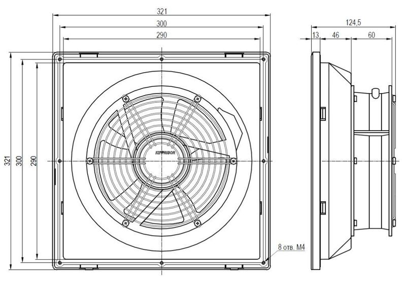 Габаритные размеры вентилятора KIPVENT-300.01.230 Габаритные размеры впускной решетки KIPVENT-300.01.300 Габаритные размеры выреза под установку решетки KIPVENT-300