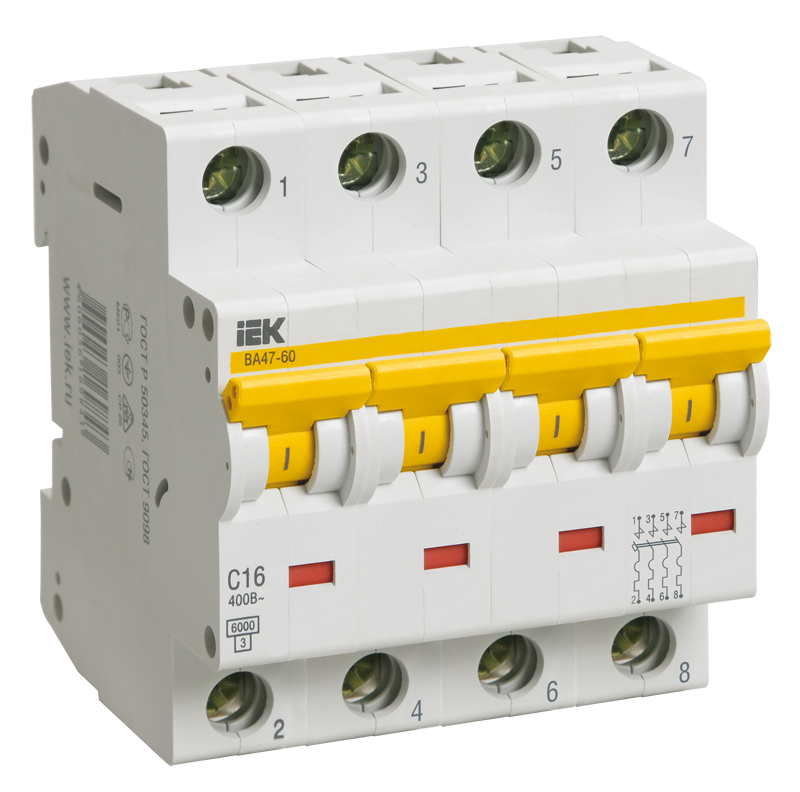 Модельный ряд автоматических выключателей ВА47-60 4Р
