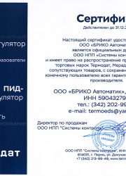 - уполномоченным представителем «КПСР Групп» — производителя клапанов запорно-регулирующих для воды, водяного пара, насыщенного пара, раствора этиленгликоля, и др. жидкостей; регуляторов давления прямого действия, теплообменного оборудования. Клапаны расчитаны на температуру до 425°С и давление до 40 атм.